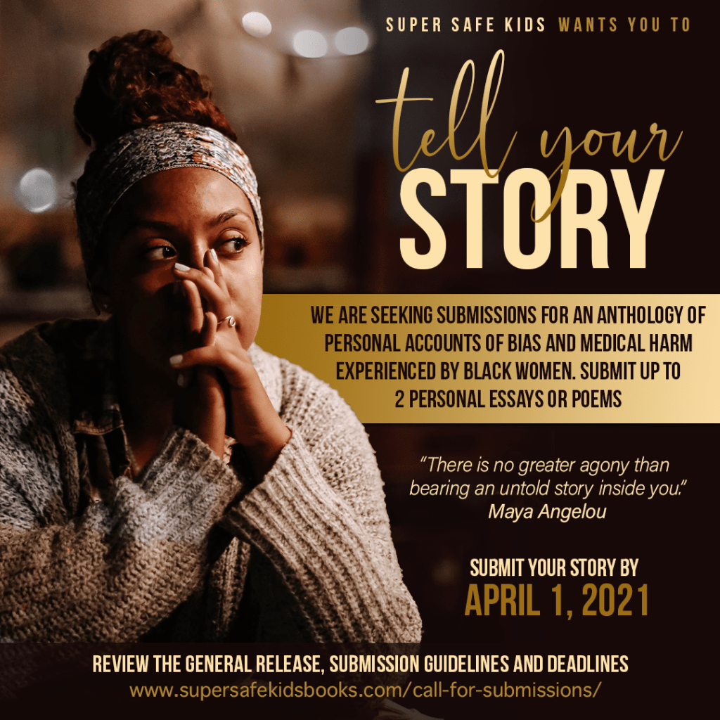 SEEKING SUBMISSIONS for an anthology of personal accounts of bias and medical harm experienced by Black women. Tell us your stories. Submit up to 2 personal essays or poems (up to 1,200 words each); no reading fee.